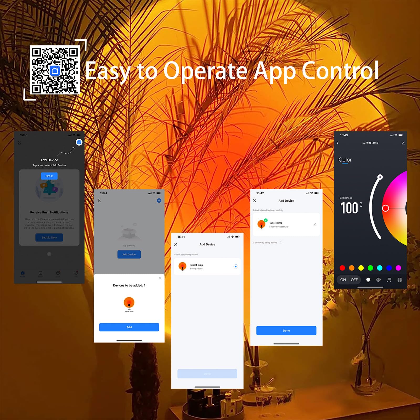 - Effortless control sunset lamp - Easily tailor the lighting to a comfortable setting based on your mood, through the intuitive app or handy remote. Adjusting the sunset light's brightness and color is effortless.